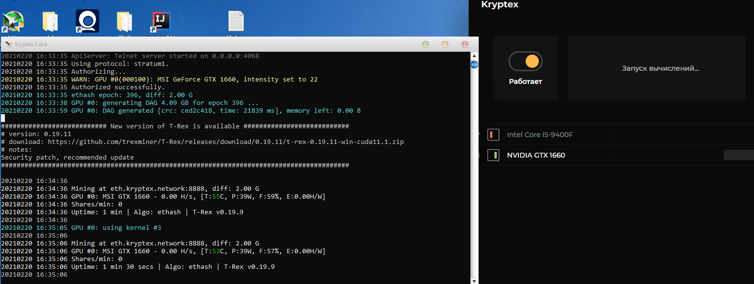 Не хочет запускать под карту - 3070 - вычисления. На час останавливал работу, поиграть (карты не только что бы копать), после запустил вновь и на карту нагрузка не запускается. И проверку повторно проводил, и перезапуск делал, даже по новой установил программу - бестолку. Окно майнера подсказывает cuda disabled. Под процессор запускается без проблем.