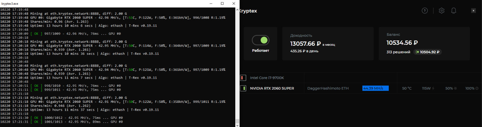 да ток она что то другое майнит а не ефир у меня доходность в месяц на 1к поднималась, алгоритм кавпов