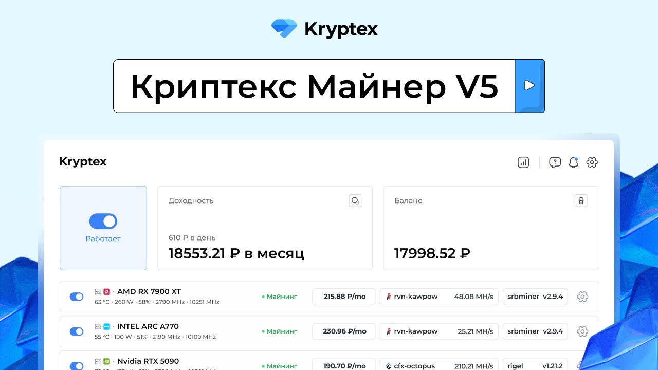Посмотрите наше минутное видео “Как начать майнить с Криптексом?”