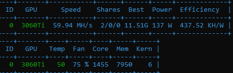 Вот и у меня переодически на nbminer просадки бывают, при том, что разгон тот же на 3060 - 0,5-0,65Mh. Стоит ли задуматься?