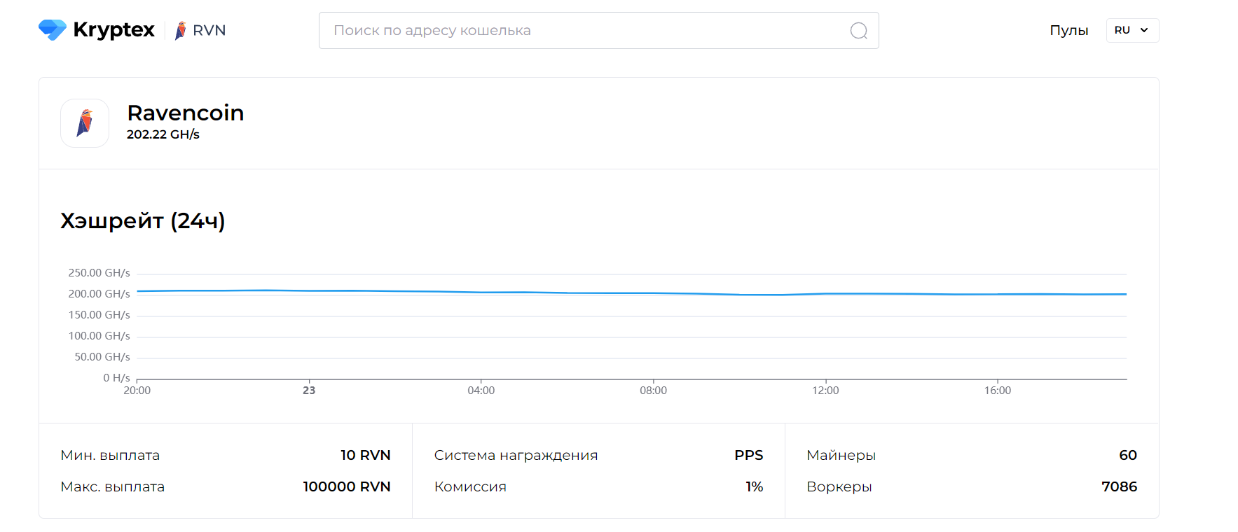 Вся эта информация дана на сайте пулов: Kryptex Pool | RVN и Kryptex Pools