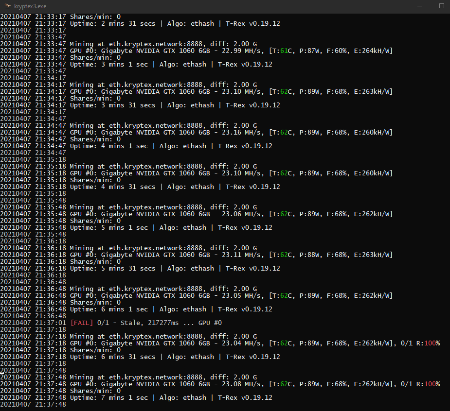 Когда все норм у меня на тирексе 2.3 процента реджектов не больше,вот буквально минуты 2 сыпали стейлы,потом мин 10 вообще пусто,потом опять пачка стейлов,сейчас зеленые пошли,вот и подумал что эфир лег, с интернетом всё в порядке!