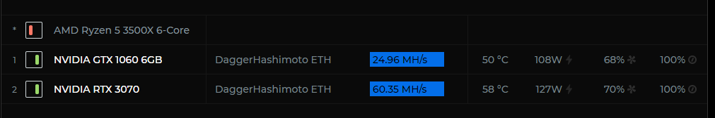 ну через запятую 1 это для 1060 а 0 это для 3070 тобеж получаеться -straps 1,0 или для тирекса --mt 1,0