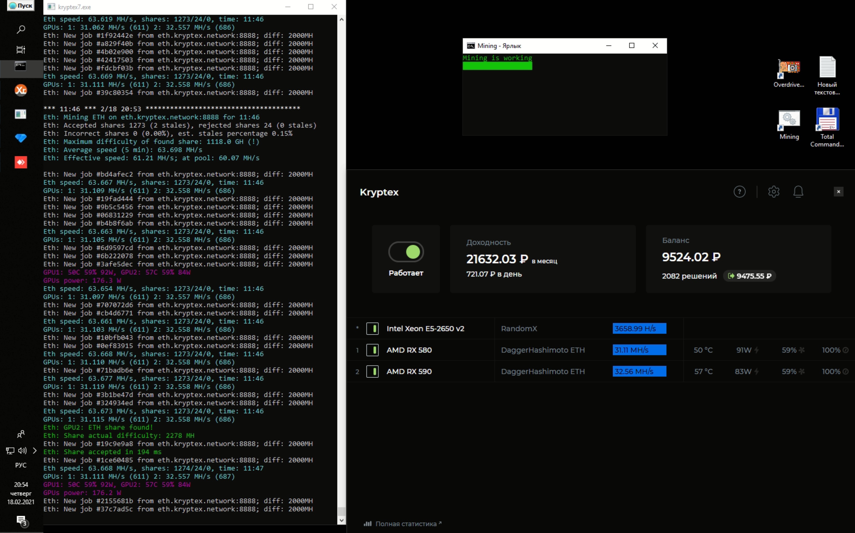 почти 12 часов работает нормально, скорость до пула максимально приблизилась к потенциальному хешрейту видях, 24 реджекта на почти 1300 шар.