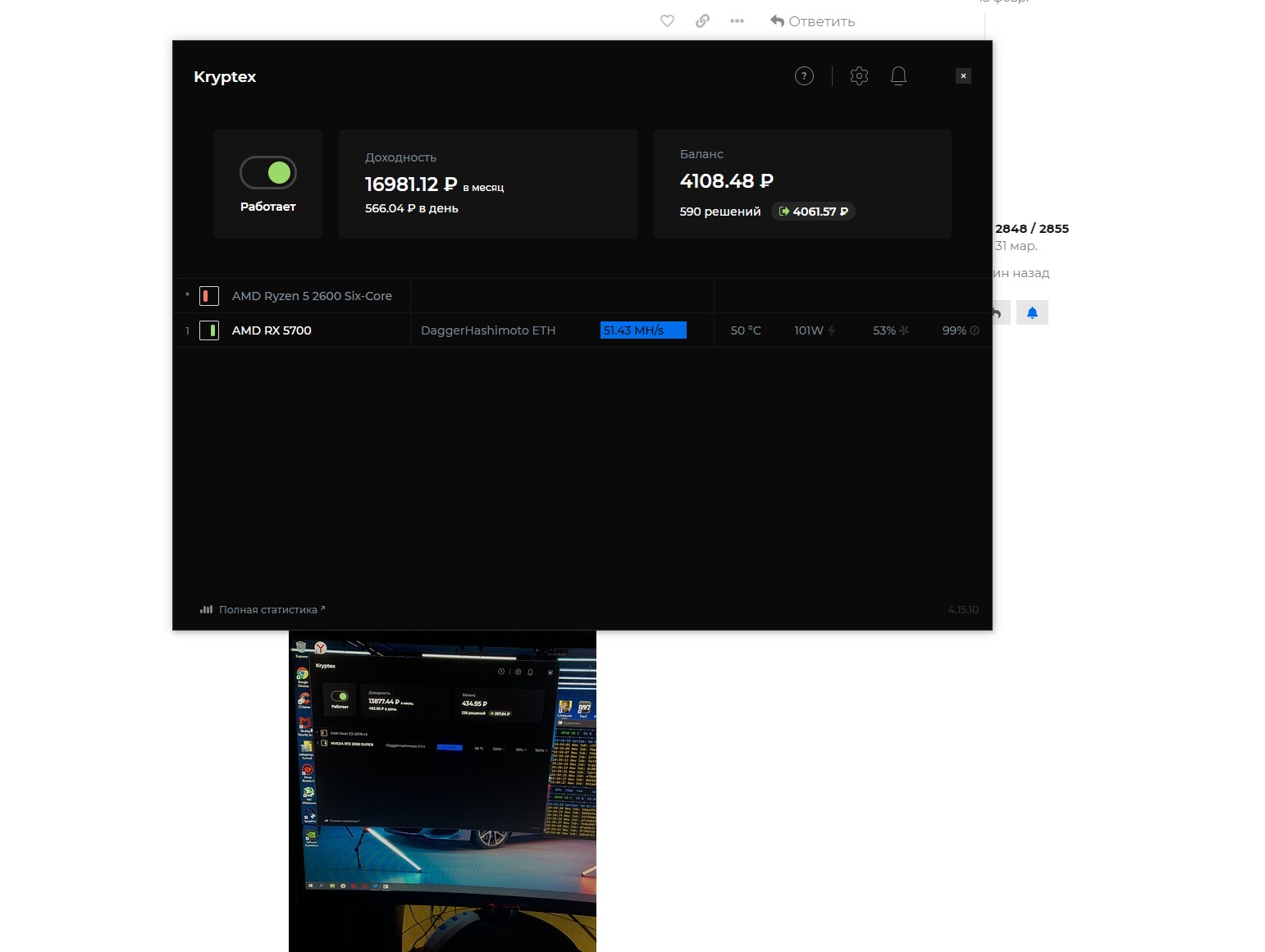 я не настоящий майнер, у меня и рига своего нету. одна жалкая карта, не то что у некоторых