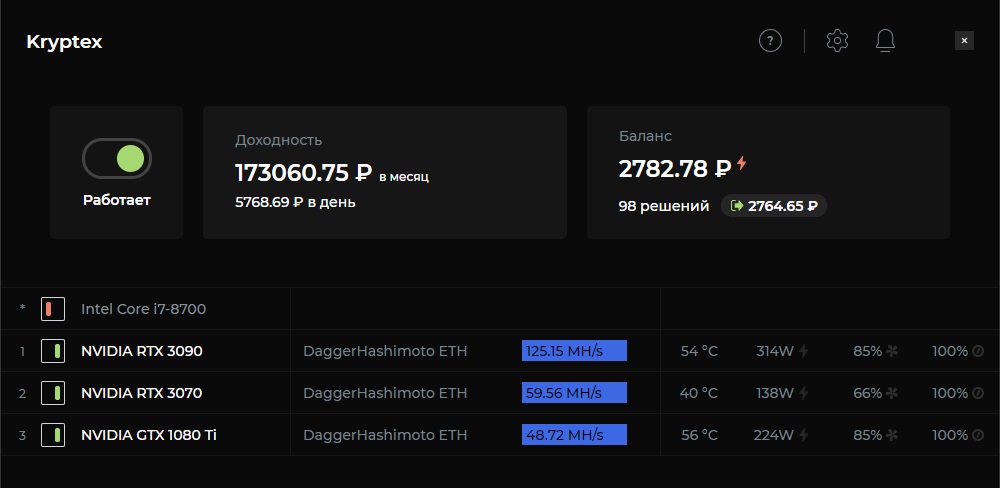 решение в криптексе != шара в майнере.
