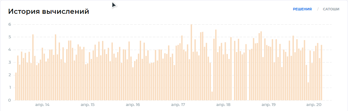 upd: решения начали появляться, только также с пробелами по времени (майнинг был без ребутов) и с небольшим количеством самих решений. В 1.5-2 раза меньше, чем обычно.