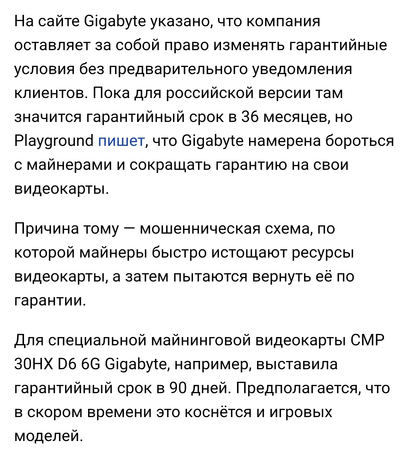 Представляю приходит оверклокер-геймер в гарантийку, а ему говорят, “извини чувак, но гарантия на твою карту истекла полгода назад…”, “но я её только 9 месяцев назад купил!!!”, “звиняй, 5-минут назад производитель передумал”… а майнерские карты… по таким ценам и с такой гарантией… кому они нужны, кроме коришей самих же производителей которые контрабандой эти карты кораблями перевозят…