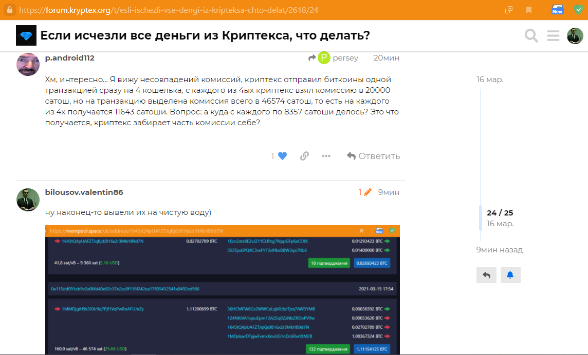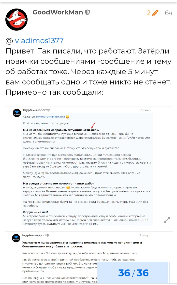 Пьфу, на вас)) Вот тут кто ответил, несколько часов назад, не поддержка, не? Решения на сайте - #48 от пользователя GoodWorkMan - Форум Криптекса