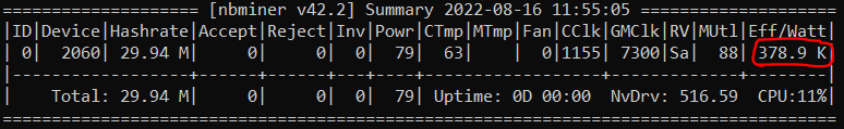 Он показывает на сколько эффективен ваш майнинг относительно энергозатрат.