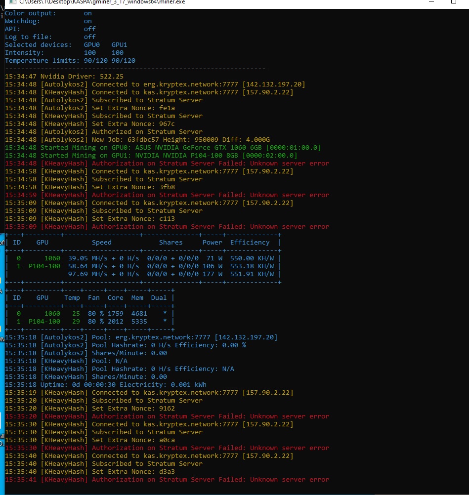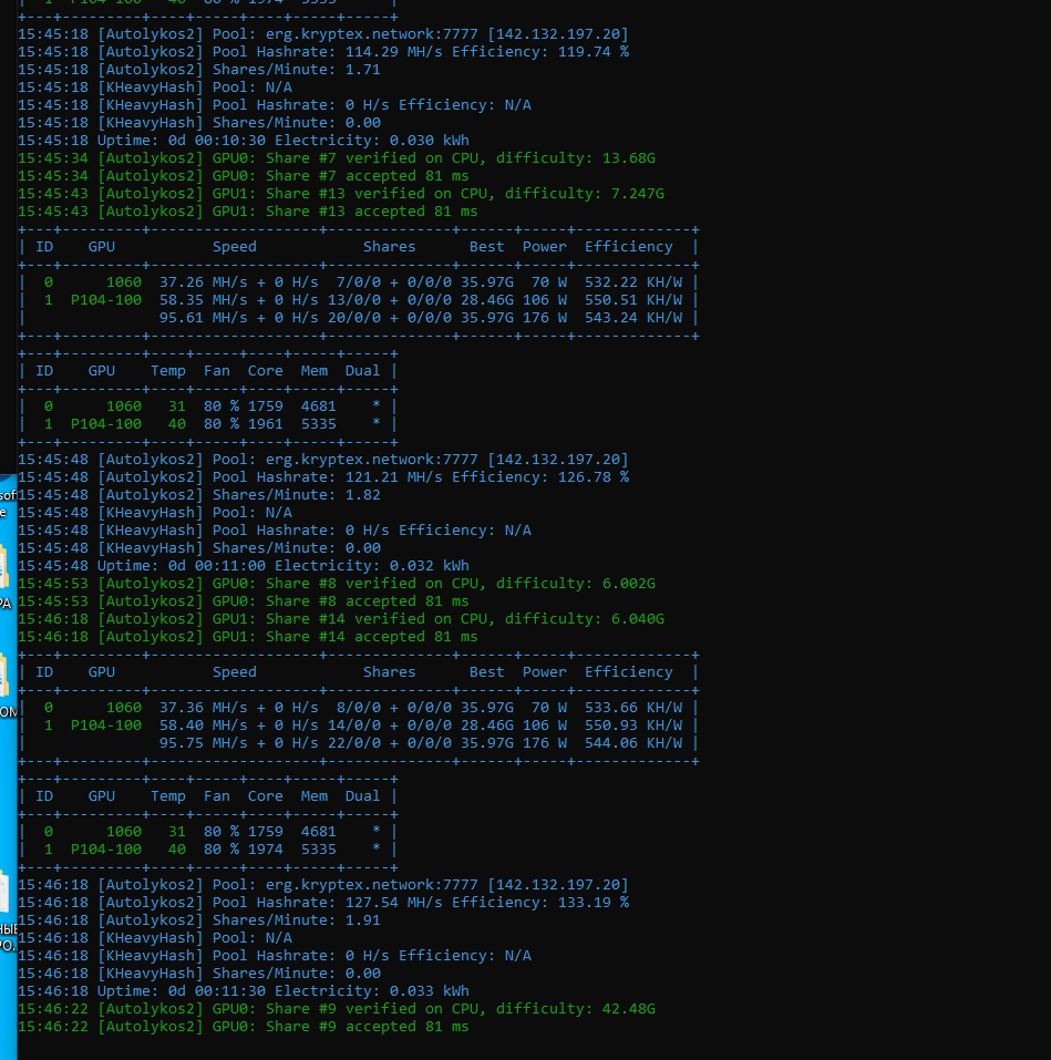 Привет всем помогите запустить бат файл почему то даже не запускается может где то я ошибку сделал найти не могу miner.exe --algo ergo --server erg.kryptex.network:7777 --user xxxxxxxxxxxxxxxxx/RIG_4 --dalgo kheavyhash --dserver kas.kryptex.network:7777 --duser xxxxxxxxxxxxxx/RIG_4 --cclock -150,150 --mclocl 800,400 --pl 70,60 --fan 75,75
