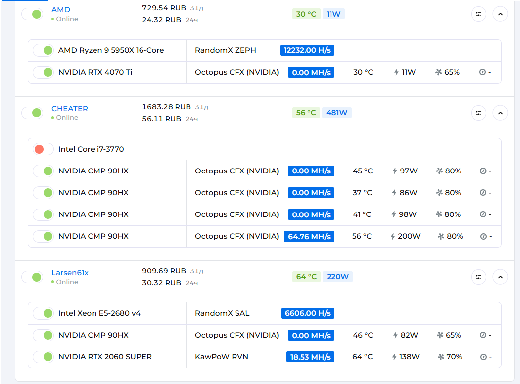 Что майнится сейчас и с каким хешрейтом?