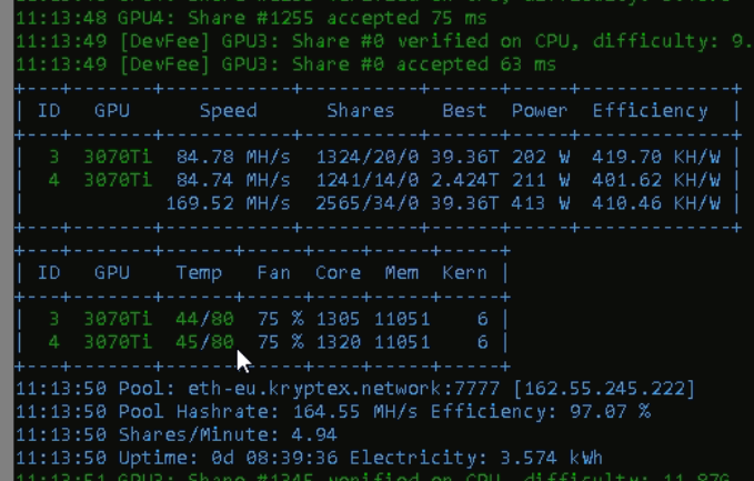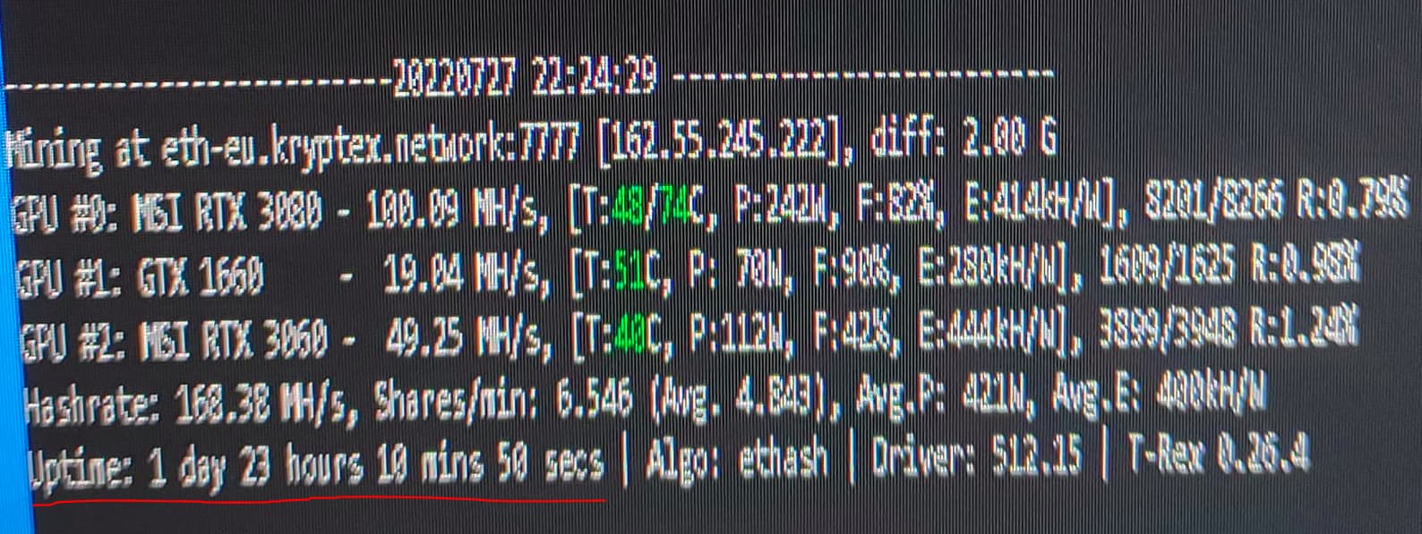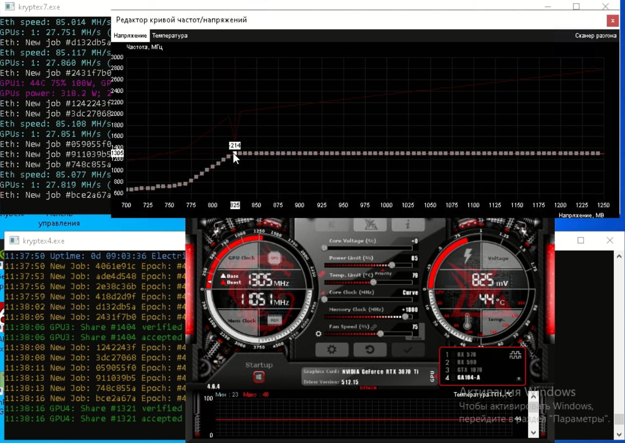 Ваще огонь. А какой аптайм майнера? Сколько карта майнила беспрерывно при таких температурах?