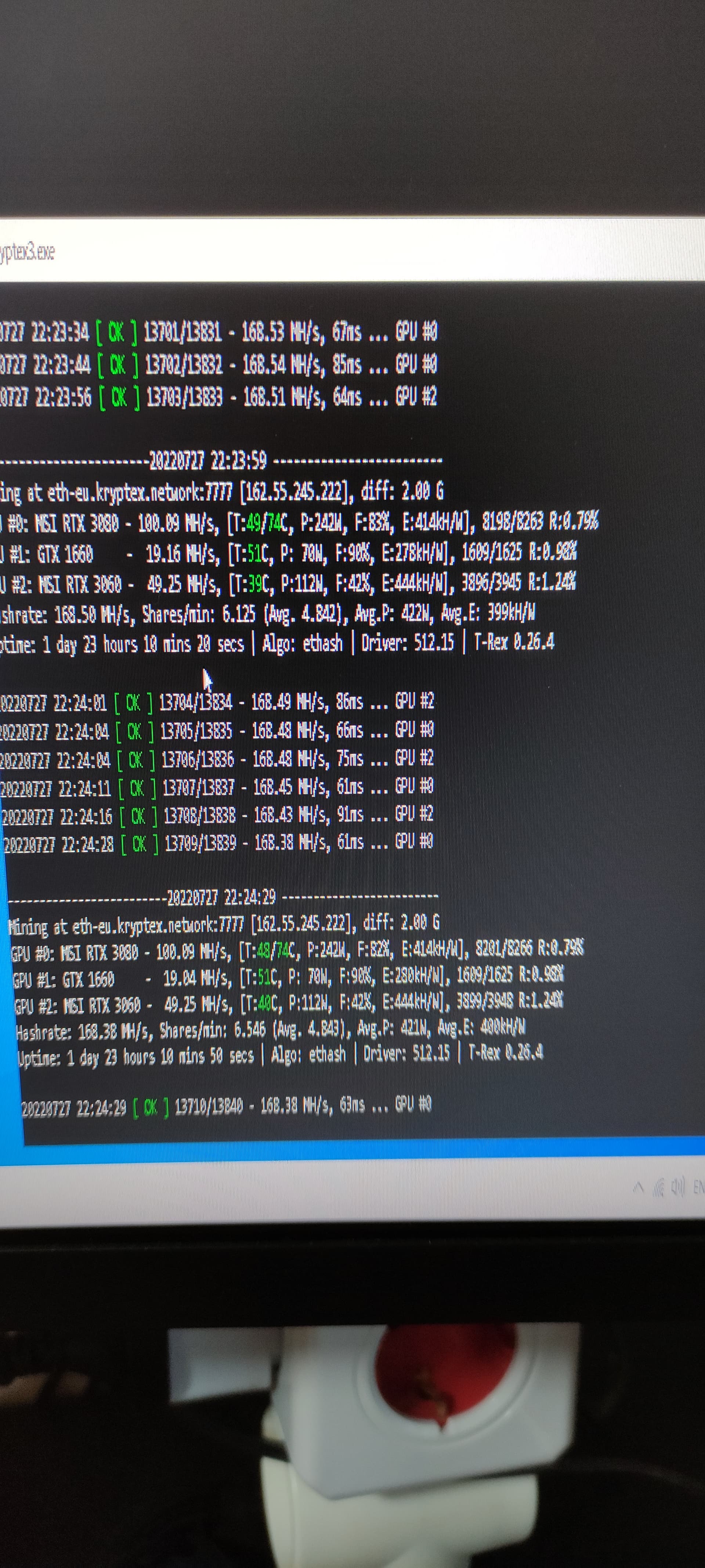 Извини,не знаю что такое аптайм,но вот фотка майнера