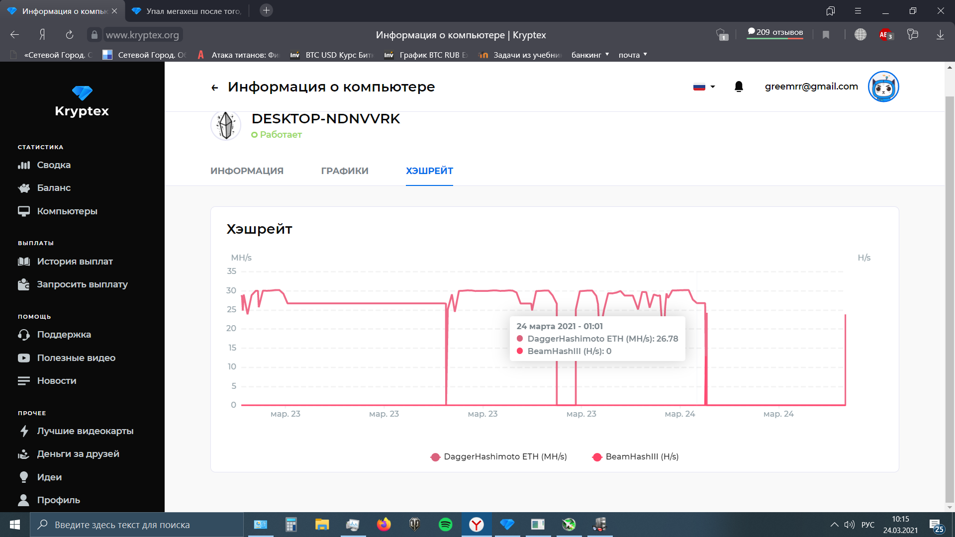 Упал мегахеш после того, как обновил биос