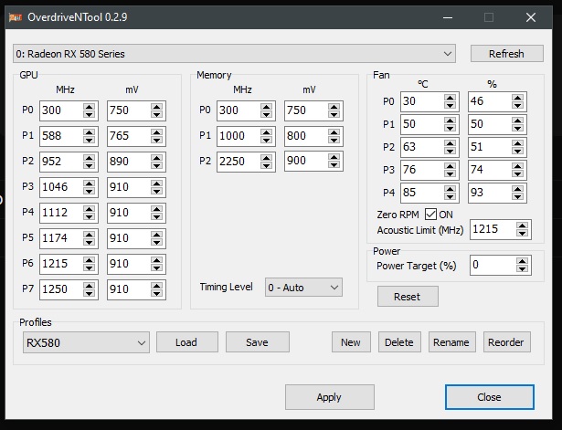 @foontsterling у вас выкручивается 2250 мгц? Энергопотребление поставьте на максимум и скорость вентиляторов на 100% и приложите скорость вашего хешрейта из окна в про режиме. Ядро сбросьте и не трогайте вообще его. По умолчанию ядро варьируется между 1300-1400мгц