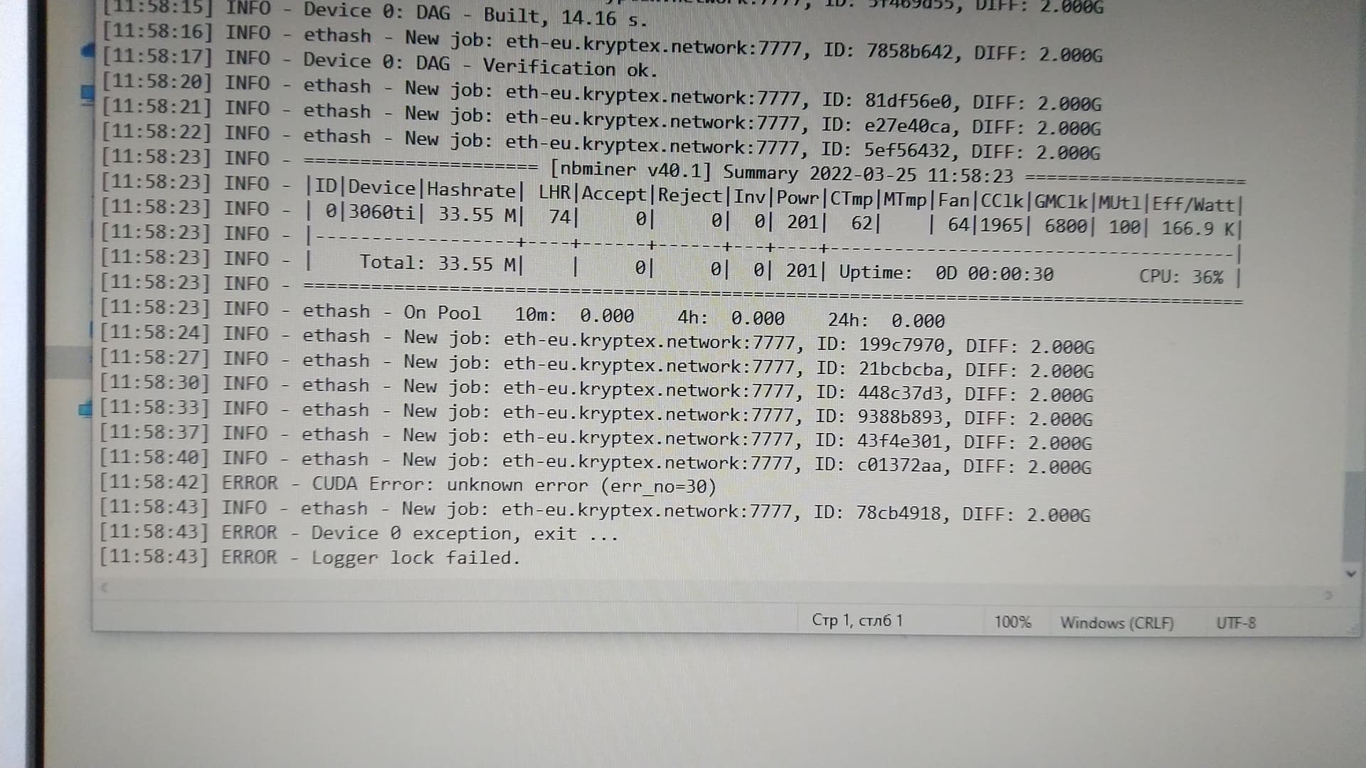 В логах ищем сопутствующую информацию по процессу майнинга.